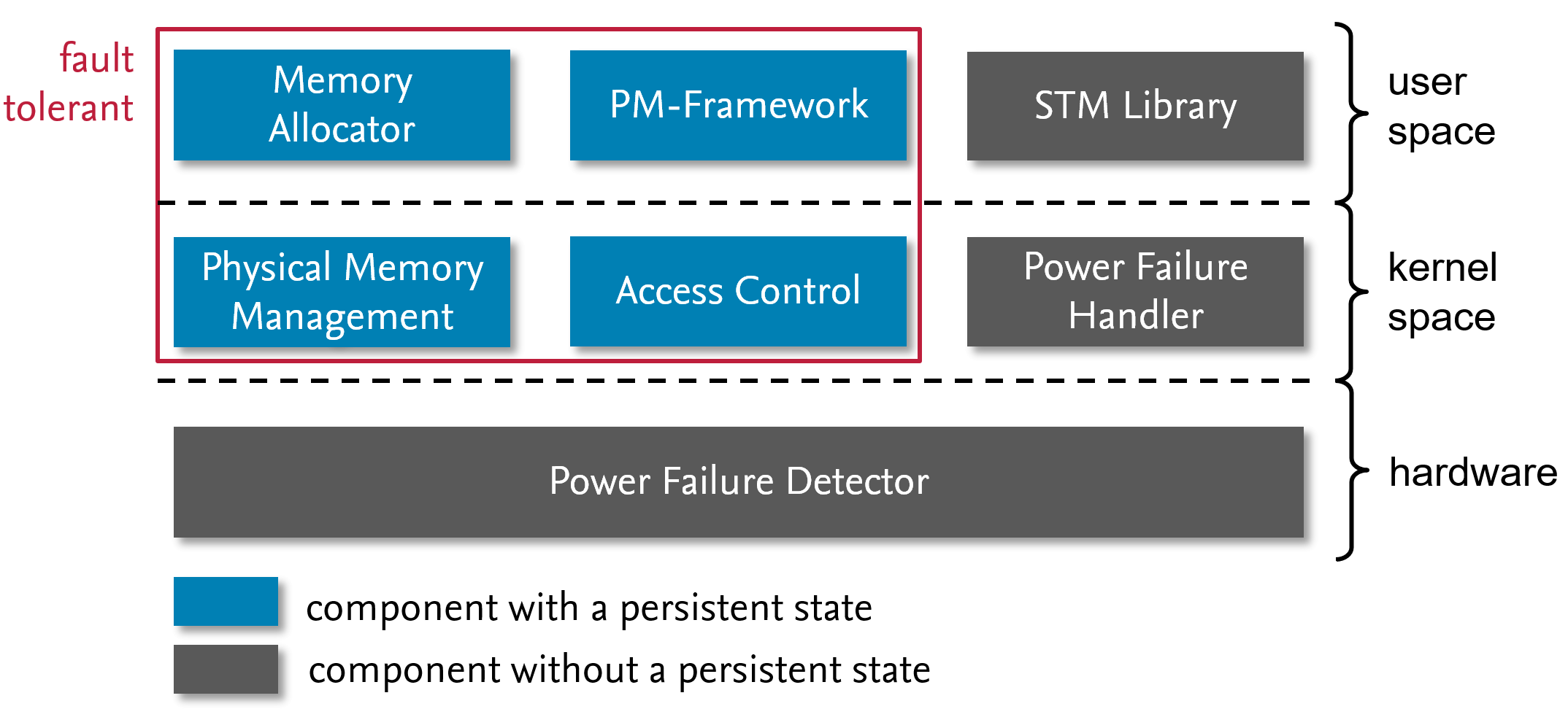With the currently available persistent memory solutions, only a portion of the main memory can be persistent, leaving the remaining memory, the CPU and all buffers on the main board still volatile. A hybrid system like this, has its state distributed across volatile and non-volatile parts. In the case of a power failure the volatile part of the state is lost and the remaining persistent part may be left inconsistent and consequently not useful anymore. To prevent inconsistencies in the persistent state, current solutions maintain logs and frequently enforce durability on the volatile state parts. This, however, not only decreases performance but also increases wear-out and the probability of faults on PCM-based persistent memory.