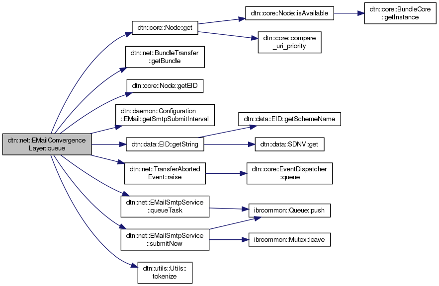 References dtn::core::Node::CONN_EMAIL, dtn::core::Node::get(), dtn::net::BundleTransfer::getBundle(), dtn::core::Node::getEID(), dtn::daemon::Configuration::EMail::getSmtpSubmitInterval(), dtn::data::EID::getString(), IBRCOMMON_LOGGER, IBRCOMMON_LOGGER_ENDL, ibrcommon::LogLevel::info, dtn::net::EMailSmtpService::queueTask(), dtn::net::TransferAbortedEvent::raise(), dtn::net::TransferAbortedEvent::REASON_UNDEFINED, dtn::net::EMailSmtpService::submitNow(), and dtn::utils::Utils::tokenize().
