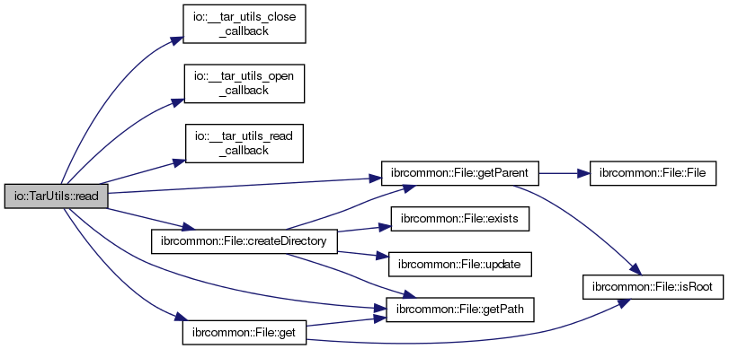 References io::__tar_utils_close_callback(), io::__tar_utils_open_callback(), io::__tar_utils_read_callback(), ibrcommon::File::createDirectory(), ibrcommon::File::get(), ibrcommon::File::getParent(), and ibrcommon::File::getPath().