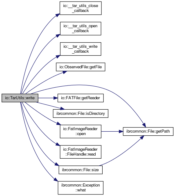References io::__tar_utils_close_callback(), io::__tar_utils_open_callback(), io::__tar_utils_write_callback(), BUFF_SIZE, ibrcommon::LogLevel::error, io::ObservedFile::getFile(), ibrcommon::File::getPath(), io::FATFile::getReader(), IBRCOMMON_LOGGER_ENDL, IBRCOMMON_LOGGER_TAG, ibrcommon::File::isDirectory(), io::FatImageReader::open(), io::FatImageReader::FileHandle::read(), ibrcommon::File::size(), and ibrcommon::Exception::what().