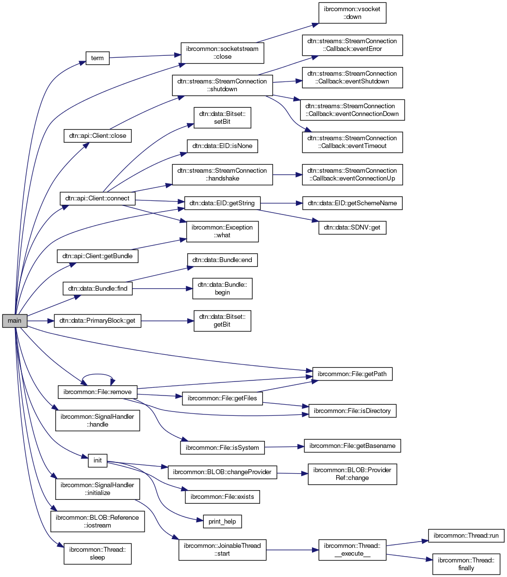 References _appname, _running, _script, _shell, blob_path, ibrcommon::socketstream::close(), dtn::api::Client::close(), dtn::api::Client::connect(), dtn::data::PrimaryBlock::DTNSEC_STATUS_VERIFIED, dtn::data::Bundle::find(), dtn::data::PrimaryBlock::get(), dtn::api::Client::getBundle(), ibrcommon::File::getPath(), dtn::data::EID::getString(), ibrcommon::SignalHandler::handle(), init(), ibrcommon::SignalHandler::initialize(), ibrcommon::BLOB::Reference::iostream(), ibrcommon::File::remove(), signed_only, ibrcommon::Thread::sleep(), dtn::data::BundleID::source, and term().