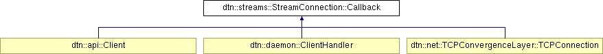 Implemented in dtn::api::Client, dtn::daemon::ClientHandler, and dtn::net::TCPConvergenceLayer::TCPConnection.