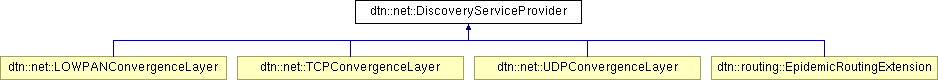 Implemented in dtn::net::LOWPANConvergenceLayer, dtn::net::TCPConvergenceLayer, dtn::net::UDPConvergenceLayer, and dtn::routing::EpidemicRoutingExtension.