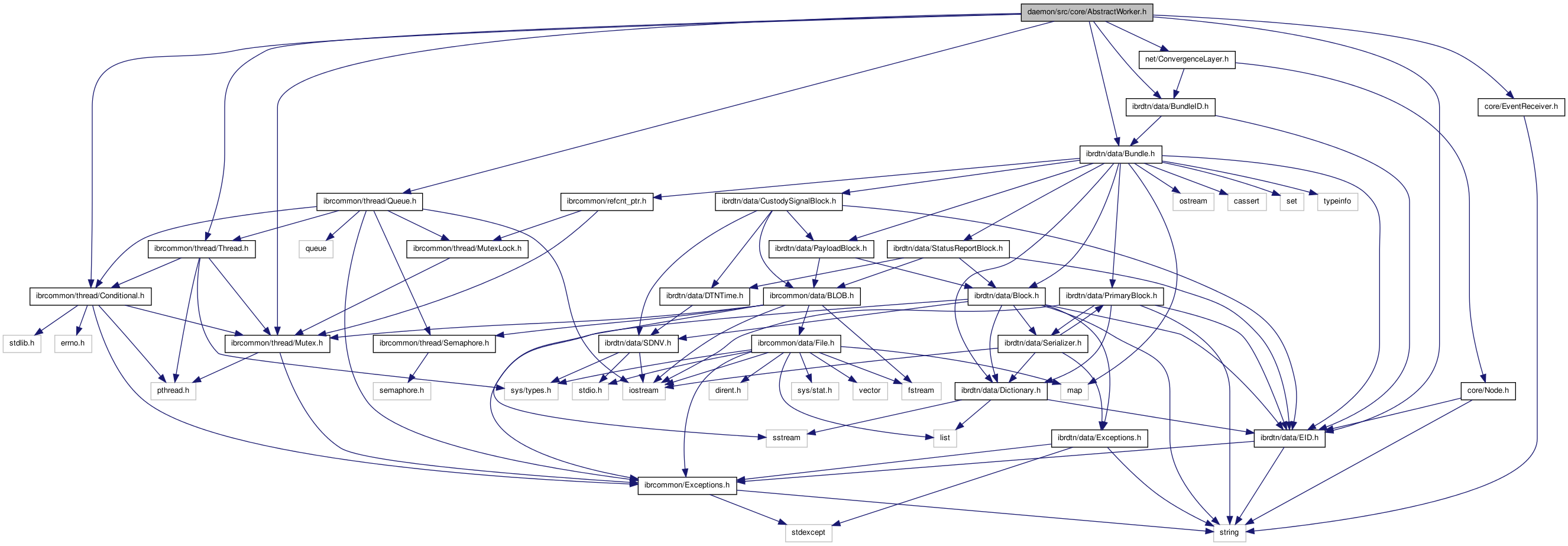 #include <ibrdtn/data/Bundle.h>#include <ibrdtn/data/BundleID.h>#include <ibrdtn/data/EID.h>#include "core/EventReceiver.h"#include <ibrcommon/thread/Mutex.h>#include <ibrcommon/thread/Conditional.h>#include <ibrcommon/thread/Thread.h>#include "net/ConvergenceLayer.h"#include <ibrcommon/thread/Queue.h>