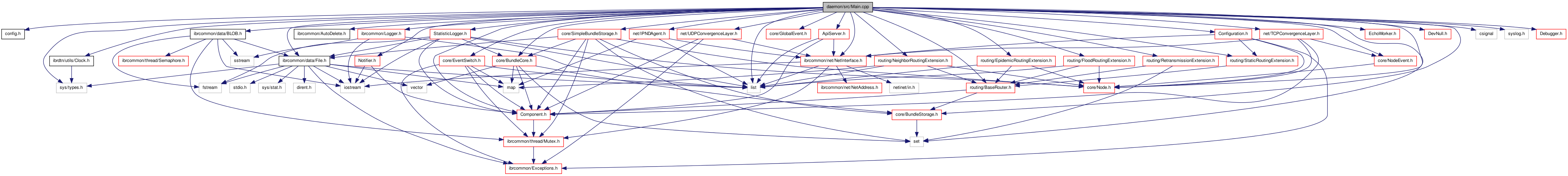 References _debug, dtn::core::BundleCore::addConnection(), dtn::routing::BaseRouter::addExtension(), dtn::daemon::Configuration::Statistic::address(), dtn::daemon::Configuration::Discovery::address(), dtn::net::DiscoveryAgent::addService(), ibrcommon::Logger::addStream(), dtn::net::IPNDAgent::bind(), createBundleStorage(), createConvergenceLayers(), dtn::daemon::Configuration::doAPI(), dtn::daemon::Configuration::Network::doForwarding(), ibrcommon::Logger::enableAsync(), dtn::daemon::Configuration::Statistic::enabled(), dtn::daemon::Configuration::Discovery::enabled(), dtn::daemon::Configuration::Debug::enabled(), ibrcommon::Logger::enableSyslog(), dtn::core::BundleCore::forwarding, ibrcommon::NetInterface::getAddress(), dtn::daemon::Configuration::getAPIInterface(), dtn::daemon::Configuration::getAPISocket(), dtn::daemon::Configuration::getDebug(), dtn::daemon::Configuration::getDiscovery(), dtn::core::EventSwitch::getInstance(), dtn::core::BundleCore::getInstance(), dtn::daemon::Configuration::Network::getInterfaces(), dtn::daemon::Configuration::getNetwork(), dtn::daemon::Configuration::getNotifyCommand(), ibrcommon::File::getPath(), dtn::daemon::Configuration::Network::getRoutingExtension(), dtn::daemon::Configuration::Network::getStaticNodes(), dtn::daemon::Configuration::Network::getStaticRoutes(), dtn::daemon::Configuration::getStatistic(), dtn::core::BundleCore::getStorage(), dtn::core::GlobalEvent::GLOBAL_SHUTDOWN, IBRCOMMON_LOGGER, IBRCOMMON_LOGGER_DEBUG, dtn::daemon::IntegratedComponent::initialize(), dtn::daemon::Configuration::NetConfig::interface, dtn::daemon::Configuration::Statistic::interval(), dtn::daemon::Configuration::Debug::level(), dtn::daemon::Configuration::load(), logerr, dtn::daemon::Configuration::Statistic::logfile(), ibrcommon::Logger::LOGGER_DEBUG, dtn::daemon::StatisticLogger::LOGGER_FILE_CSV, dtn::daemon::StatisticLogger::LOGGER_FILE_PLAIN, dtn::daemon::StatisticLogger::LOGGER_FILE_STAT, dtn::daemon::StatisticLogger::LOGGER_STDOUT, dtn::daemon::StatisticLogger::LOGGER_SYSLOG, dtn::daemon::StatisticLogger::LOGGER_UDP, logopts, logstd, logsys, dtn::core::EventSwitch::loop(), dtn::daemon::Configuration::params(), dtn::daemon::Configuration::Statistic::port(), dtn::daemon::Configuration::NetConfig::port, dtn::daemon::Configuration::Discovery::port(), dtn::daemon::Configuration::Debug::quiet(), dtn::core::GlobalEvent::raise(), setGlobalVars(), ibrcommon::Logger::setVerbosity(), sighandler(), dtn::daemon::IntegratedComponent::startup(), ibrcommon::Logger::stop(), switchUser(), dtn::daemon::IntegratedComponent::terminate(), dtn::daemon::Configuration::Statistic::type(), and dtn::daemon::Configuration::version().