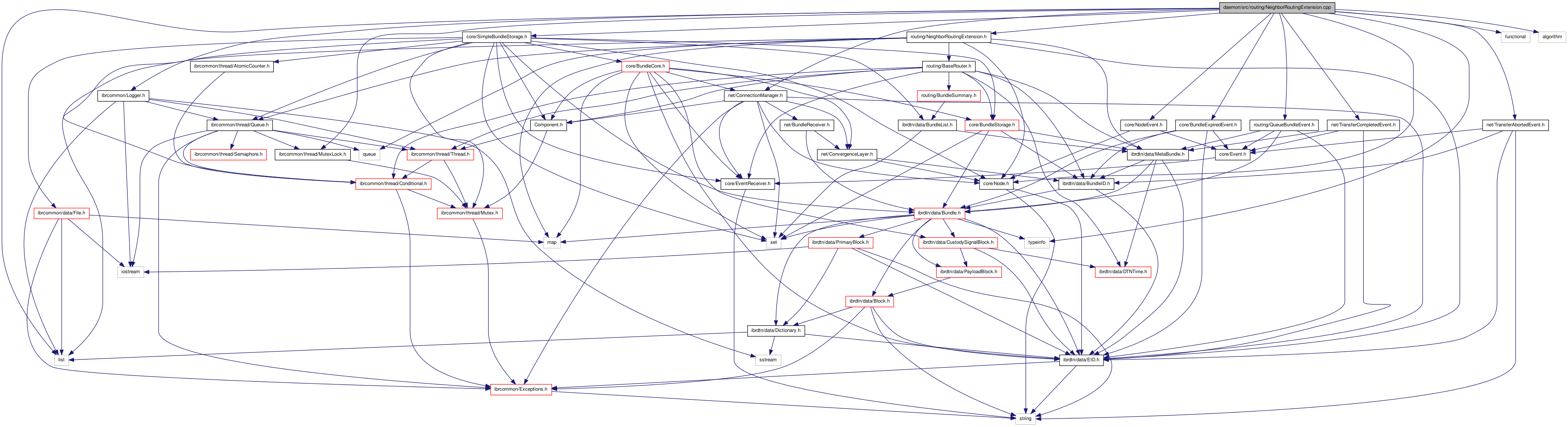 #include "routing/NeighborRoutingExtension.h"#include "routing/QueueBundleEvent.h"#include "net/TransferCompletedEvent.h"#include "net/TransferAbortedEvent.h"#include "core/BundleExpiredEvent.h"#include "core/NodeEvent.h"#include "core/Node.h"#include "net/ConnectionManager.h"#include "ibrcommon/thread/MutexLock.h"#include "core/SimpleBundleStorage.h"#include <ibrcommon/Logger.h>#include <functional>#include <list>#include <algorithm>#include <typeinfo>