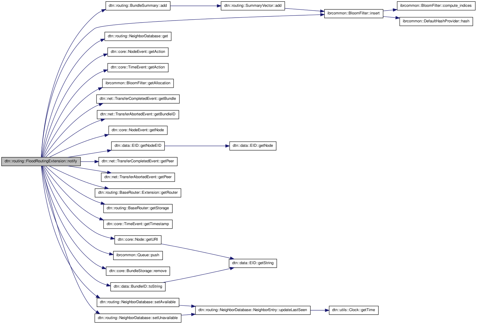 References dtn::routing::NeighborDatabase::NeighborEntry::_filter, dtn::routing::BundleSummary::add(), dtn::routing::QueueBundleEvent::bundle, dtn::data::MetaBundle::destination, dtn::routing::NeighborDatabase::get(), dtn::core::NodeEvent::getAction(), dtn::core::TimeEvent::getAction(), ibrcommon::BloomFilter::getAllocation(), dtn::net::TransferCompletedEvent::getBundle(), dtn::net::TransferAbortedEvent::getBundleID(), dtn::core::NodeEvent::getNode(), dtn::data::EID::getNodeEID(), dtn::net::TransferCompletedEvent::getPeer(), dtn::net::TransferAbortedEvent::getPeer(), dtn::routing::BaseRouter::Extension::getRouter(), dtn::routing::BaseRouter::getStorage(), dtn::core::TimeEvent::getTimestamp(), dtn::core::Node::getURI(), IBRCOMMON_LOGGER_DEBUG, IBRCOMMON_LOGGER_LEVEL, ibrcommon::BloomFilter::insert(), dtn::core::NODE_AVAILABLE, dtn::core::NODE_UNAVAILABLE, ibrcommon::Queue< T >::push(), dtn::net::TransferAbortedEvent::reason, dtn::net::TransferAbortedEvent::REASON_BUNDLE_DELETED, dtn::net::TransferAbortedEvent::REASON_CONNECTION_DOWN, dtn::net::TransferAbortedEvent::REASON_REFUSED, dtn::net::TransferAbortedEvent::REASON_RETRY_LIMIT_REACHED, dtn::net::TransferAbortedEvent::REASON_UNDEFINED, dtn::core::BundleStorage::remove(), dtn::routing::NeighborDatabase::setAvailable(), dtn::routing::NeighborDatabase::setUnavailable(), and dtn::data::BundleID::toString().