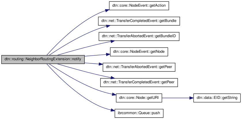 References dtn::core::BundleExpiredEvent::_bundle, dtn::routing::QueueBundleEvent::bundle, dtn::core::NodeEvent::getAction(), dtn::net::TransferCompletedEvent::getBundle(), dtn::net::TransferAbortedEvent::getBundleID(), dtn::core::NodeEvent::getNode(), dtn::net::TransferAbortedEvent::getPeer(), dtn::net::TransferCompletedEvent::getPeer(), dtn::core::Node::getURI(), dtn::core::NODE_AVAILABLE, dtn::core::NODE_UNAVAILABLE, ibrcommon::Queue< T >::push(), dtn::net::TransferAbortedEvent::reason, dtn::net::TransferAbortedEvent::REASON_BUNDLE_DELETED, dtn::net::TransferAbortedEvent::REASON_CONNECTION_DOWN, dtn::net::TransferAbortedEvent::REASON_REFUSED, dtn::net::TransferAbortedEvent::REASON_RETRY_LIMIT_REACHED, and dtn::net::TransferAbortedEvent::REASON_UNDEFINED.