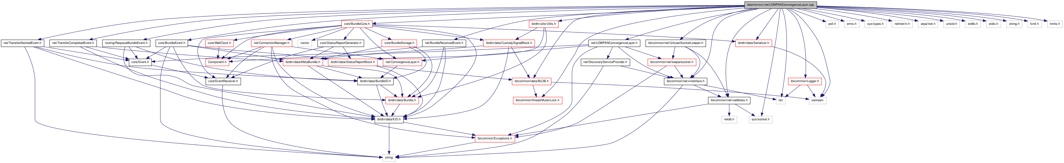 #include "net/LOWPANConvergenceLayer.h"#include "net/BundleReceivedEvent.h"#include "core/BundleEvent.h"#include "net/TransferCompletedEvent.h"#include "net/TransferAbortedEvent.h"#include "routing/RequeueBundleEvent.h"#include <ibrcommon/net/UnicastSocketLowpan.h>#include <ibrcommon/net/vaddress.h>#include <ibrcommon/net/vinterface.h>#include "core/BundleCore.h"#include <ibrcommon/data/BLOB.h>#include <ibrcommon/Logger.h>#include <ibrcommon/thread/MutexLock.h>#include <ibrdtn/utils/Utils.h>#include <ibrdtn/data/Serializer.h>#include <sys/socket.h>#include <poll.h>#include <errno.h>#include <sys/types.h>#include <netinet/in.h>#include <arpa/inet.h>#include <unistd.h>#include <stdlib.h>#include <stdio.h>#include <string.h>#include <fcntl.h>#include <limits.h>#include <iostream>#include <list>