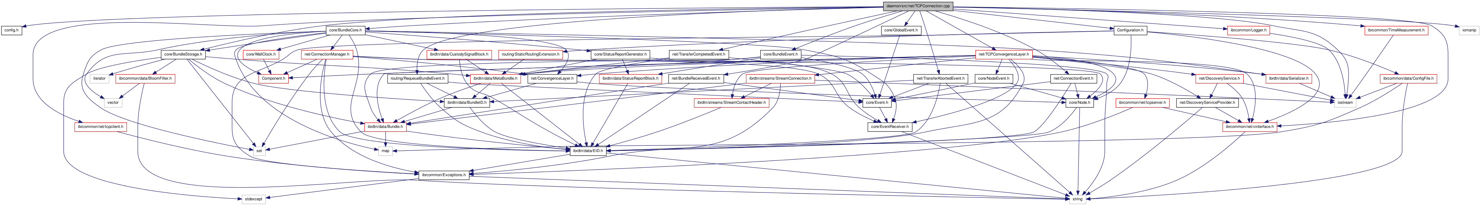 #include "config.h"#include "core/BundleCore.h"#include "core/GlobalEvent.h"#include "core/BundleEvent.h"#include "core/BundleStorage.h"#include "Configuration.h"#include "net/TCPConvergenceLayer.h"#include "net/BundleReceivedEvent.h"#include "net/ConnectionEvent.h"#include "net/TransferCompletedEvent.h"#include "net/TransferAbortedEvent.h"#include "routing/RequeueBundleEvent.h"#include <ibrcommon/net/tcpclient.h>#include <ibrcommon/TimeMeasurement.h>#include <ibrcommon/net/vinterface.h>#include <ibrcommon/Logger.h>#include <iostream>#include <iomanip>