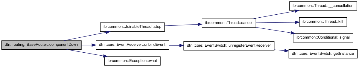 References dtn::core::BundleGeneratedEvent::className, dtn::core::TimeEvent::className, dtn::core::BundleExpiredEvent::className, dtn::core::NodeEvent::className, dtn::routing::RequeueBundleEvent::className, dtn::routing::QueueBundleEvent::className, dtn::net::BundleReceivedEvent::className, dtn::net::TransferCompletedEvent::className, dtn::net::TransferAbortedEvent::className, IBRCOMMON_LOGGER, ibrcommon::JoinableThread::stop(), dtn::core::EventReceiver::unbindEvent(), and ibrcommon::Exception::what().