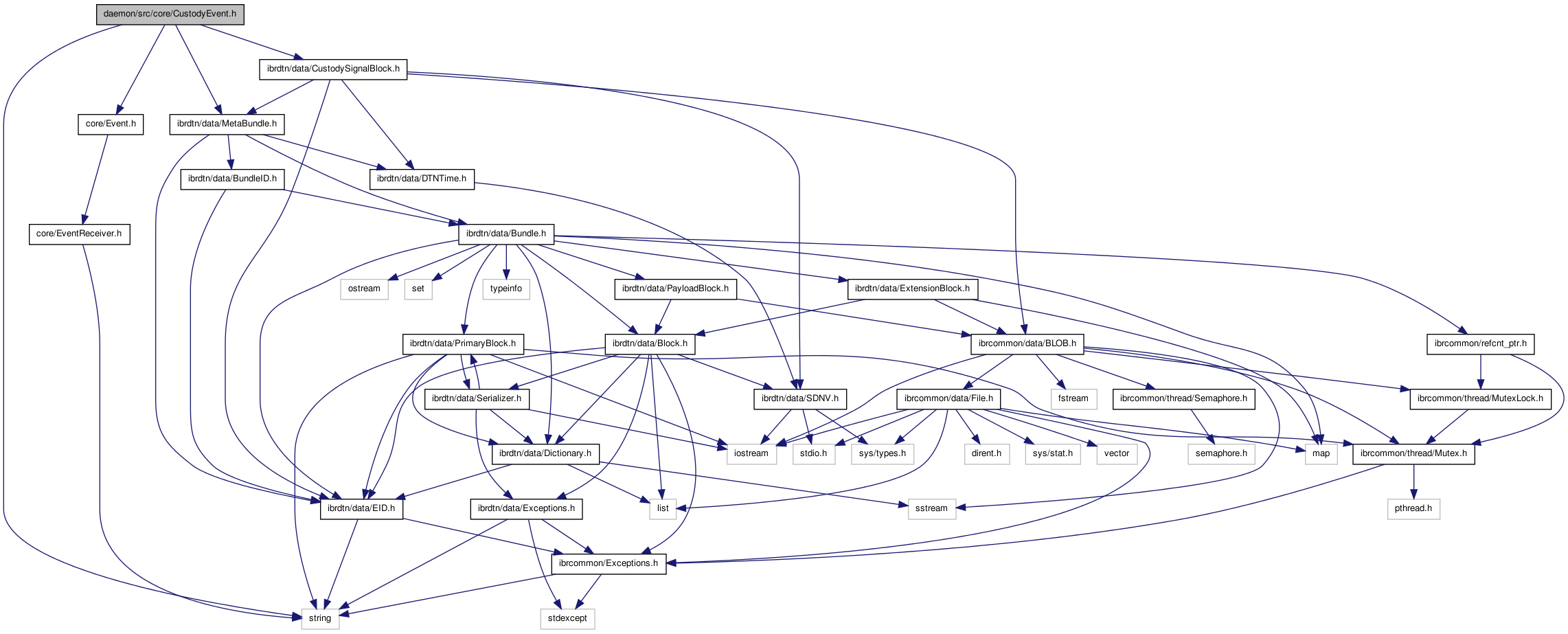 #include <string>#include "core/Event.h"#include <ibrdtn/data/MetaBundle.h>#include <ibrdtn/data/CustodySignalBlock.h>