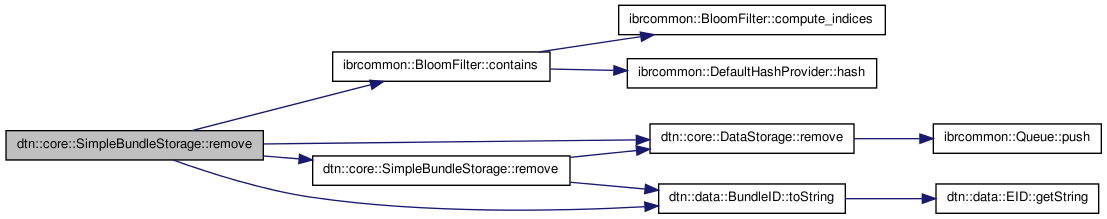 References ibrcommon::BloomFilter::contains(), dtn::core::DataStorage::remove(), remove(), and dtn::data::BundleID::toString().