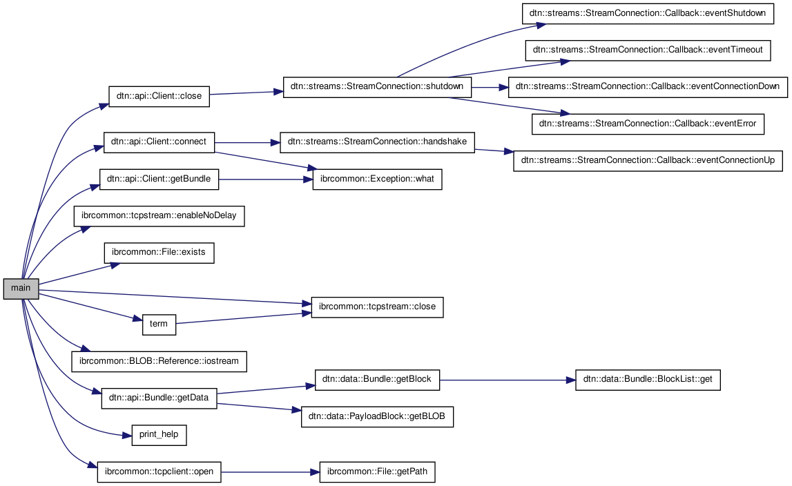 References _stdout, ibrcommon::tcpstream::close(), dtn::api::Client::close(), dtn::api::Client::connect(), ibrcommon::tcpstream::enableNoDelay(), ibrcommon::File::exists(), dtn::api::Client::getBundle(), dtn::api::Bundle::getData(), h, ibrcommon::BLOB::Reference::iostream(), ibrcommon::tcpclient::open(), print_help(), and term().