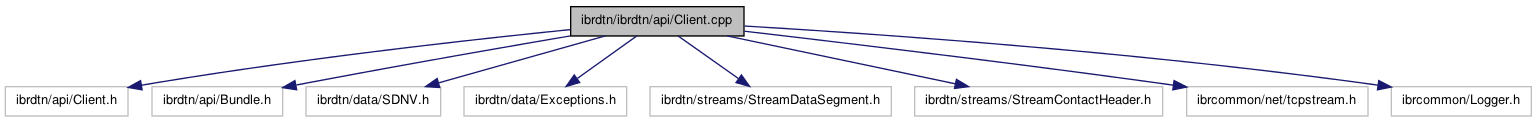 #include "ibrdtn/api/Client.h"#include "ibrdtn/api/Bundle.h"#include "ibrdtn/data/SDNV.h"#include "ibrdtn/data/Exceptions.h"#include "ibrdtn/streams/StreamDataSegment.h"#include "ibrdtn/streams/StreamContactHeader.h"#include <ibrcommon/net/tcpstream.h>#include <ibrcommon/Logger.h>