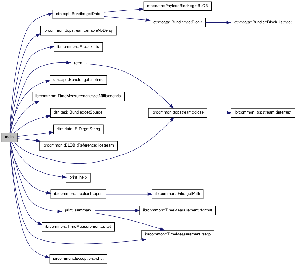 References _addr, _avg, _max, _min, _received, _transmitted, ibrcommon::tcpstream::close(), ibrcommon::tcpstream::enableNoDelay(), ibrcommon::File::exists(), dtn::api::Bundle::getData(), dtn::api::Bundle::getLifetime(), ibrcommon::TimeMeasurement::getMilliseconds(), dtn::api::Bundle::getSource(), dtn::data::EID::getString(), ibrcommon::BLOB::Reference::iostream(), dtn::api::Client::MODE_BIDIRECTIONAL, dtn::api::Client::MODE_SENDONLY, ibrcommon::tcpclient::open(), print_help(), print_summary(), ibrcommon::TimeMeasurement::start(), ibrcommon::TimeMeasurement::stop(), term(), and ibrcommon::Exception::what().