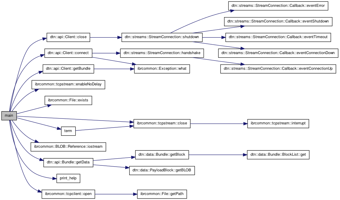 References _stdout, ibrcommon::tcpstream::close(), dtn::api::Client::close(), dtn::api::Client::connect(), ibrcommon::tcpstream::enableNoDelay(), ibrcommon::File::exists(), dtn::api::Client::getBundle(), dtn::api::Bundle::getData(), h, ibrcommon::BLOB::Reference::iostream(), ibrcommon::tcpclient::open(), print_help(), and term().