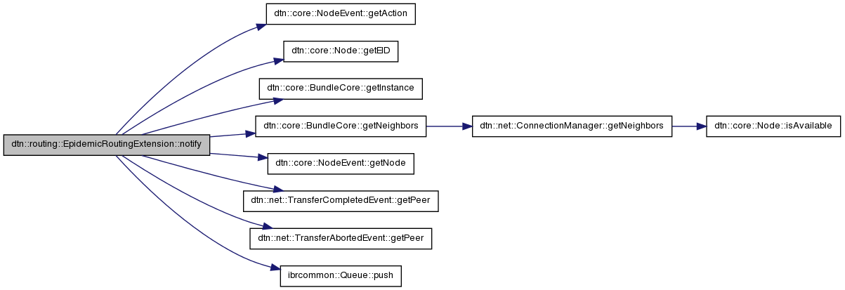 References dtn::core::NodeEvent::getAction(), dtn::core::Node::getEID(), dtn::core::BundleCore::getInstance(), dtn::core::BundleCore::getNeighbors(), dtn::core::NodeEvent::getNode(), dtn::net::TransferCompletedEvent::getPeer(), dtn::net::TransferAbortedEvent::getPeer(), dtn::routing::NodeHandshakeEvent::HANDSHAKE_COMPLETED, dtn::routing::NodeHandshakeEvent::HANDSHAKE_UPDATED, dtn::core::NODE_AVAILABLE, dtn::routing::NodeHandshakeEvent::peer, ibrcommon::Queue< T >::push(), and dtn::routing::NodeHandshakeEvent::state.