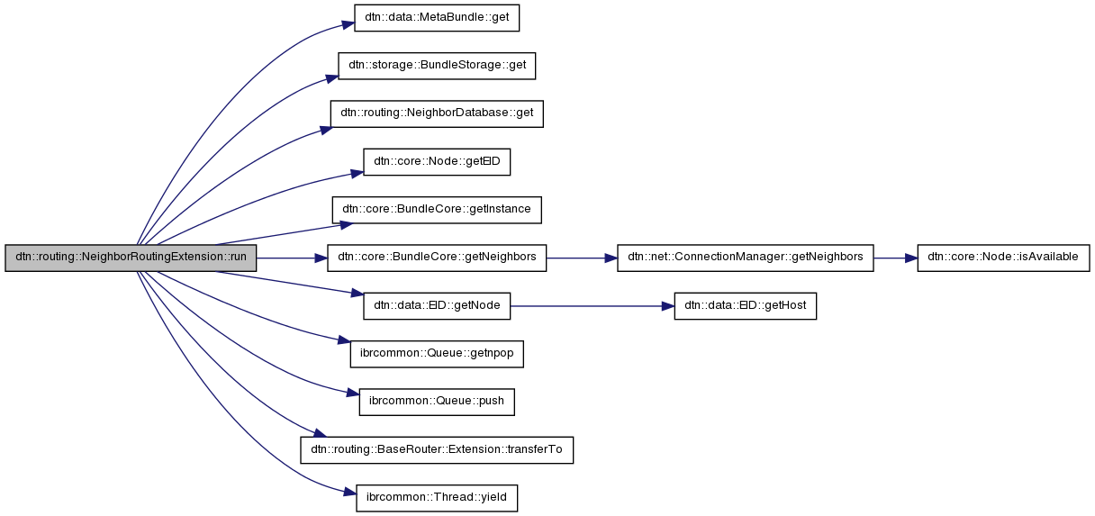 References dtn::data::MetaBundle::destination, dtn::data::PrimaryBlock::DESTINATION_IS_SINGLETON, dtn::data::MetaBundle::get(), dtn::storage::BundleStorage::get(), dtn::routing::NeighborDatabase::get(), dtn::core::Node::getEID(), dtn::core::BundleCore::getInstance(), dtn::core::BundleCore::getNeighbors(), dtn::data::EID::getNode(), ibrcommon::Queue< T >::getnpop(), dtn::data::MetaBundle::hopcount, IBRCOMMON_LOGGER_DEBUG, IBRCOMMON_LOGGER_ENDL, dtn::core::BundleCore::local, ibrcommon::Queue< T >::push(), dtn::routing::BaseRouter::Extension::transferTo(), and ibrcommon::Thread::yield().