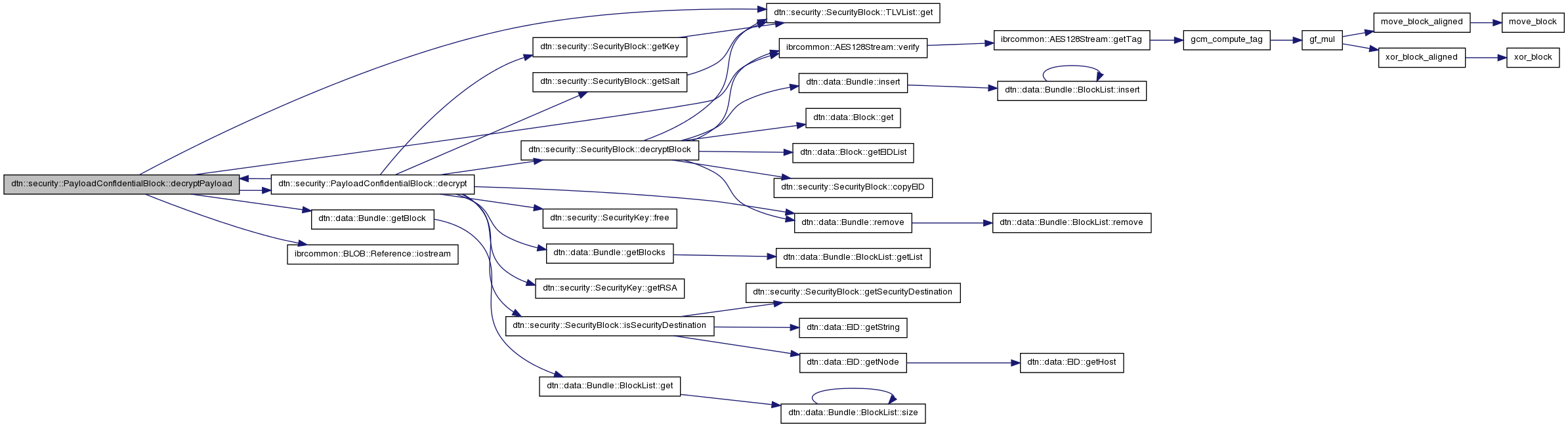 References dtn::security::SecurityBlock::_ciphersuite_flags, dtn::security::SecurityBlock::_ciphersuite_id, dtn::security::SecurityBlock::_ciphersuite_params, dtn::security::SecurityBlock::_correlator, dtn::security::SecurityBlock::CONTAINS_CORRELATOR, dtn::security::SecurityBlock::decryptBlock(), decryptPayload(), dtn::security::SecurityKey::free(), dtn::data::Bundle::getBlocks(), dtn::security::SecurityBlock::getKey(), dtn::security::SecurityKey::getRSA(), dtn::security::SecurityBlock::getSalt(), IBRCOMMON_LOGGER, IBRCOMMON_LOGGER_ENDL, dtn::security::SecurityBlock::isSecurityDestination(), ibrcommon::AES128Stream::key_size_in_bytes, dtn::security::SecurityBlock::PCB_RSA_AES128_PAYLOAD_PIB_PCB, dtn::security::SecurityKey::reference, dtn::data::Bundle::remove(), and dtn::security::SecurityBlock::salt.
