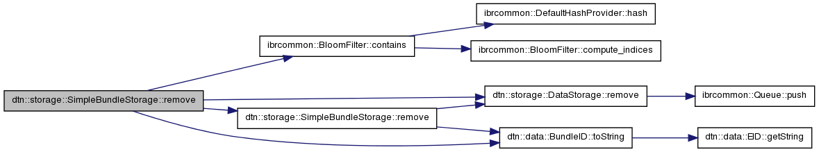 References ibrcommon::BloomFilter::contains(), ibrcommon::RWMutex::LOCK_READWRITE, remove(), dtn::storage::DataStorage::remove(), and dtn::data::BundleID::toString().