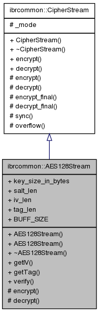 | AES128Stream (const CipherMode mode, std::ostream &output, const unsigned char key[key_size_in_bytes], const u_int32_t salt, const unsigned char iv[iv_len]) | |