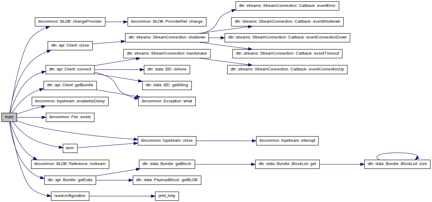 References _conn, _running, blob_path, ibrcommon::BLOB::changeProvider(), ibrcommon::tcpstream::close(), dtn::api::Client::close(), dtn::api::Client::connect(), ibrcommon::tcpstream::enableNoDelay(), ibrcommon::File::exists(), dtn::api::Client::getBundle(), dtn::api::Bundle::getData(), ibrcommon::BLOB::Reference::iostream(), ibrcommon::appstreambuf::MODE_WRITE, readconfiguration(), and term().