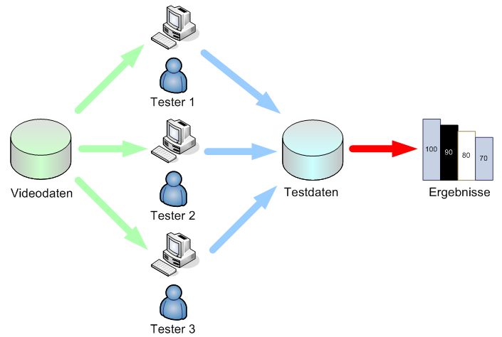 Für Videoübertragungen über das Internet allgemein sowie speziell im mobilen Einsatz muss die Video-Kompression an den Grenzen ihrer Leistungsfähigkeit arbeiten. Das bedeutet im Idealfall, dass die Bilddaten so komprimiert werden, dass der Betrachter die dadurch entstehenden Fehler gerade eben noch nicht wahrnimmt. In der Regel ist es jedoch notwendig, diese Grenze zu überschreiten, so dass Artefakte und weitere Fehler in den Bildern sichtbar werden. Um die Auswirkungen dieser Fehler auf die menschliche Qualitätswahrnehmung zu untersuchen, können so genannte subjektive Tests durchgeführt werden. Das bedeutet, dass einer Reihe von Betrachtern unter üblicherweise genau vorgeschriebenen Bedingungen Sequenzen gezeigt werden, deren Qualität sie anschließend auf einer Skala von 0 (,‚bad“) bis 100 („excellent“) bewerten. Lockert man die Bedingungen für solche Tests ein wenig, was in Anbetracht der Tatsache, dass gerade im mobilen Bereich Parameter wie beispielsweise die Umgebungsbeleuchtung und der Betrachtungsabstand kaum sinnvoll festgelegt werden können, legitim erscheint, können solche Tests an einem ganz gewöhnlichen PC mit einer Internetverbindung durchgeführt werden. Im Rahmen dieser Diplomarbeit soll ein System entwickelt und implementiert werden, das die Durchführung subjektiver Tests zur Videoqualitätsbewertung über das Internet ermöglicht.