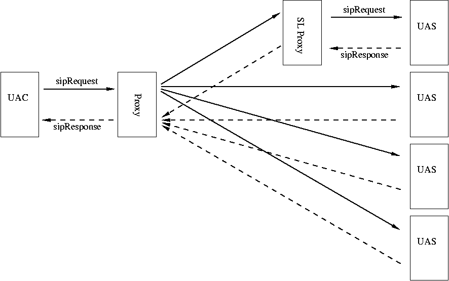 Das Session Initiation Protocol (SIP) ist ein Protokoll zur Einrichtung und Verwaltung von Multimedia-Sessions. Es hat sich z.B. in den letzten Jahren als eine Alternative zum H.323-Protokoll für die IP-Telefonie entwickelt. Um das Verhalten eines solchen Protokolls auch für größere Netze effizient untersuchen zu können bietet sich die Möglichkeit der Simulation. Das bedeutet, dass in einer Simulationsumgebung ein Modell des zu testenden Netzes erzeugt wird. Dort kann das Modell dann unterschiedlichen Einflüssen und Probeläufen ausgesetzt werden, ohne, dass das Netz wirklich schon existieren müßte. Die Simulation stellt also eine ressourcensparende Möglichkeit dar, ein zukünftiges Netzwerk zu testen. In dieser Studienarbeit soll das SIP mit Hilfe der Simulationsumgebung OMNeT++ simuliert werden. OMNeT++ ist eine Simulationsumgebung, welche die Generierung komplexer Modelle aus grundlegenden Einheiten gut unterstützt. Beispielsweise können so große Netzwerke aus mehreren Server- und Client-Komponenten zusammen gefügt werden. In OMNeT++ lassen sich auch Zustandsautomaten direkt modellieren, was für Signalisierungsprotokolle besonders interessant ist. Da es Zeit noch keine Implementierung des SIP für OMNeT++ existiert, besteht die Hauptaufgabe, ein Modell des Protokolls zu implementieren, aus dem dann ganze Netzwerke zusammen gestellt werden können. Der Aufbau und die Funktionen des SIP liegen als RFC veröffentlicht vor und können daraus entnommen werden. Um aber an dem modularen Prinzip der Simulationsumgebung fest zu halten, muss das Protokoll bzw. seine Funktionen sinnvoll untergliedert werden. Wir haben uns an die Untergliederung nach Host, Server und den Nachrichtenklassen entschieden, die so auch im RFC behandelt wird. Hierbei stellt der Host die Schnittstelle zum Anwender dar - also die so genannten "User Agent Clients" (UAC) und "User Agent Server" (UAS). Die Aufgaben des Servers sind die Entgegennahme von Registrierungsinformationen (Registrar), deren Veröffentlichung (Location Service), Abgabe von Umleitungsinformationen (Redirect Server) und die Nachrichtenweiterleitung (Proxying). Für diese Dienste können jeweils einzelne Server eingesetzt werden - sinnvoller Weise sollte ein Server aber alle Dienste beherrschen. Serverseitig befaßt sich diese Arbeit allerdings vorwiegend mit der Nachrichtenweiterleitung - den SIP-Proxies. Die Nachrichtenklassen sind in "Anfrage" (Request) und "Antwort" (Response) untergliedert. Ziel ist somit OMNeT++-Module für die beschriebenen Module des SIP zu entwickeln, die dann zu kleinen (und später auch großen) Netzwerken zusammen gesetzt werden können. Beispielhaft seien im Folgenden zwei Netze dargestellt: