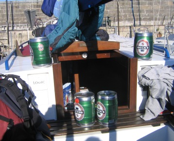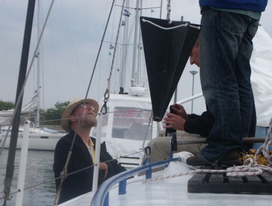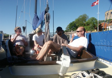 Kurz nachdem ich dann Sonja und Björn zum Bus gebracht habe, kommt meine neue Crew in Svaneke an. Sie bringen ordentlich neue Vorräte mit. Gottseidank, denn die Alarmleuchte im Bierlager blinkt, trotz des großen Nachkaufs in Sassnitz, schon wieder hektisch...Wir verstauen das Gepäck und richten uns erstmal neu ein. Ich koche nen Topf voll Spaghetti für die geplagte Meute und die Müdigkeit kommt früh. Der erste Törn ist ein geschmeidiger 11 Meilen Schlag nach Cristiansö, eine der 'Erbseninseln', die Bornholm vorgelagert ist. Wir segeln los und versuchen dem bischen Wind das bestmögliche an Geschwindigkeit abzuverlangen.
