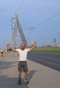 Um zwölf singen wir Christine oder so ein Ständchen und werden dafür in die Disko 'Nautilus' geschleust, was uns fast 30 Euro Eintritt pro Person spart!! Ziemlich Schickimicki hier aber witzig auf jeden Fall... Zumindest halten wir es so lange aus, dass wir erst um 7 ins Bett kippen,Wir bleiben noch einen Tag hier, denn wir würden es nicht schaffen NACH der Schlüsselübergabe unserer Wohnung und VOR dem Finale mit dem Bus zurück nach Ventspils zu fahren. So verbringen wir auch den Sonntag mit Stadterkundung. Daniel und Seb jammern, ich liefe zu langsam und es werden mir im Einkaufszetrum für 4 Euro Inliner verpasst, damit es endlich schneller vorangeht. Funktioniert aber nicht allzu lange: Ohne Socken drücken die Dinger, ich trage sie also (mit den Händen) und verliere auch noch einen Innenschuh, den ich dann noch suchen gehen muss (aber auch finde). Anschließend treffen wir uns mit Romina und gucken dann auf dem großen Marktplatz zusammen das Finale der WM. Von jetzt an müssen wir unseren Zeitplan endlich nicht mehr ständig nach dem Fußball richten :-)