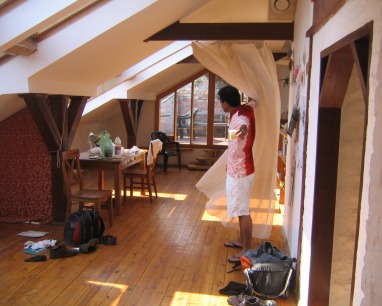 Erwähnenswert ist auch noch die geile Penthousewohnung in der wir derzeit wohnen. Sie ist unterm Dach im fünften Stock, riesengroß, mit viel Holz und Kamin und einem Balkon mit Stadtblick, auf dem wir nach dem Spiel unseren Rigabesuch noch ganz gemütlich ausklingen lassen. Nur mit dem Wasserdruck müssen die Riganer noch etwas üben. Machnmal kommt Wasser aus den Leitungen, manchaml wenig und als Daniel das Spülbecken volllaufen lassen will, versiegt es völlig...