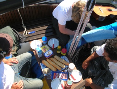 Zwanzig Stunden hat die Überfahrt gedauert, zwar schneller als die Hinfahrt, aber um einiges anstrengender - ich falle erstmal in die Koje...Wir gönnen uns ein großes Frühstück und regenerieren und entspannen uns für den Rest des Tages. Abends wird auf den großen Steinen der Hafenbefestigung gegrillt und wir spielen noch eine Partie Siedler.