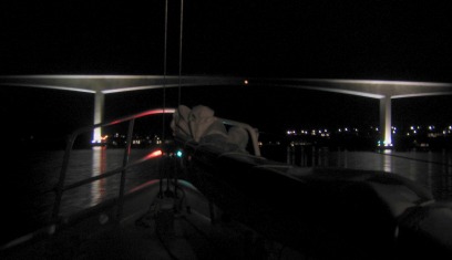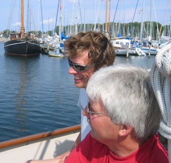 Nach dem Frühstück öffnet die Brücke und wir legen ab. Ich rufe Paul an und sage ihm, dass wir unterwegs sind. 'Ah - ich seh euch' Kommt es zurück. Er ist grad mit dem Fahrrad unterwegs. Schnell wird er an Bord genommen und weist uns den Weg zum Yachthafen. Um 12:30 gibt's dann an Bord der Polaris einen Anleger und wir schmieden Pläne für den Tag. Abends grillen, klar. Vorher noch etwas Pause, Stadt angucken, an den Strand oder so...Aus versehen verlängern wir das Anleger trinken dann bis zum Grillen! Wir haben viel Spaß - Daniel und Till verstehen sich auf Anhieb mit unseren Gastgebern, so dass Bier und Schnapsvorräte sich bedrohlich dem Ende neigen! Gestärkt durch viel Fleisch und Renates köstliche Salate machen meine Crew und ich uns noch auf den Weg in die Disko.