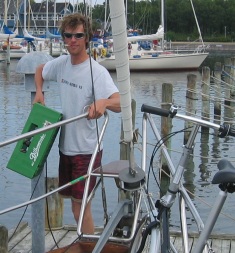 Abschnitt 13: zurück nach Kiel13.-19.8.2006Es wird ein harter Einstiegstag für meine neue Crew! Wir haben das Ziel beim Zeitplan Boden gut zu machen und binnen einer Woche nach Kiel zu segeln. Der Wetterbericht meldet zwar noch 6 bis 7 Windstärken, aber es sind nur noch 4 bis 5. Zunächst... Dann wird es ungemütlicher: Es fängt an zu regnen, es fängt an zu gießen! Wir können kaum mehr 30 Meter gucken. Als dann die ersten Sturmböen anrauschen, bergen wir schnell das Großsegel und machen mit Baumfock immer noch 6 Knoten! Durchnässt erreichen wir Marup auf Samsö (55°56.231'N, 10°33.134'E). Schonmal 36 Meilen geschafft. Das Anlegen gelingt beim zweiten Versuch gut, zunächst hätten wir fast an einem Steg ohne Zugang zum Land angelegt. Morgen wollen Daniel und Till ihren Neoprenanzug anziehen - was beim Surfen hilft, kann beim Segeln nicht stören, denken sie sich. Ich bin gespannt...